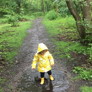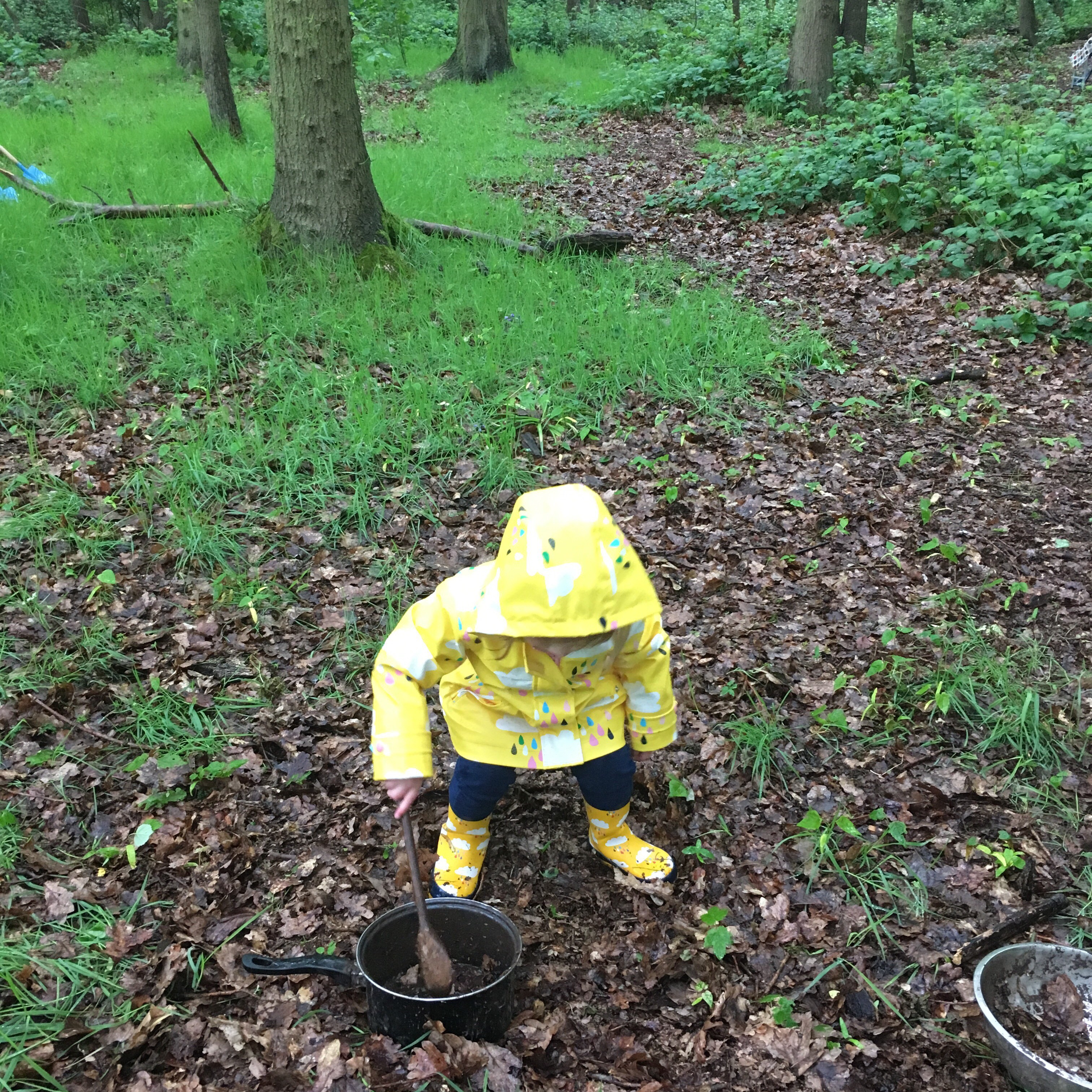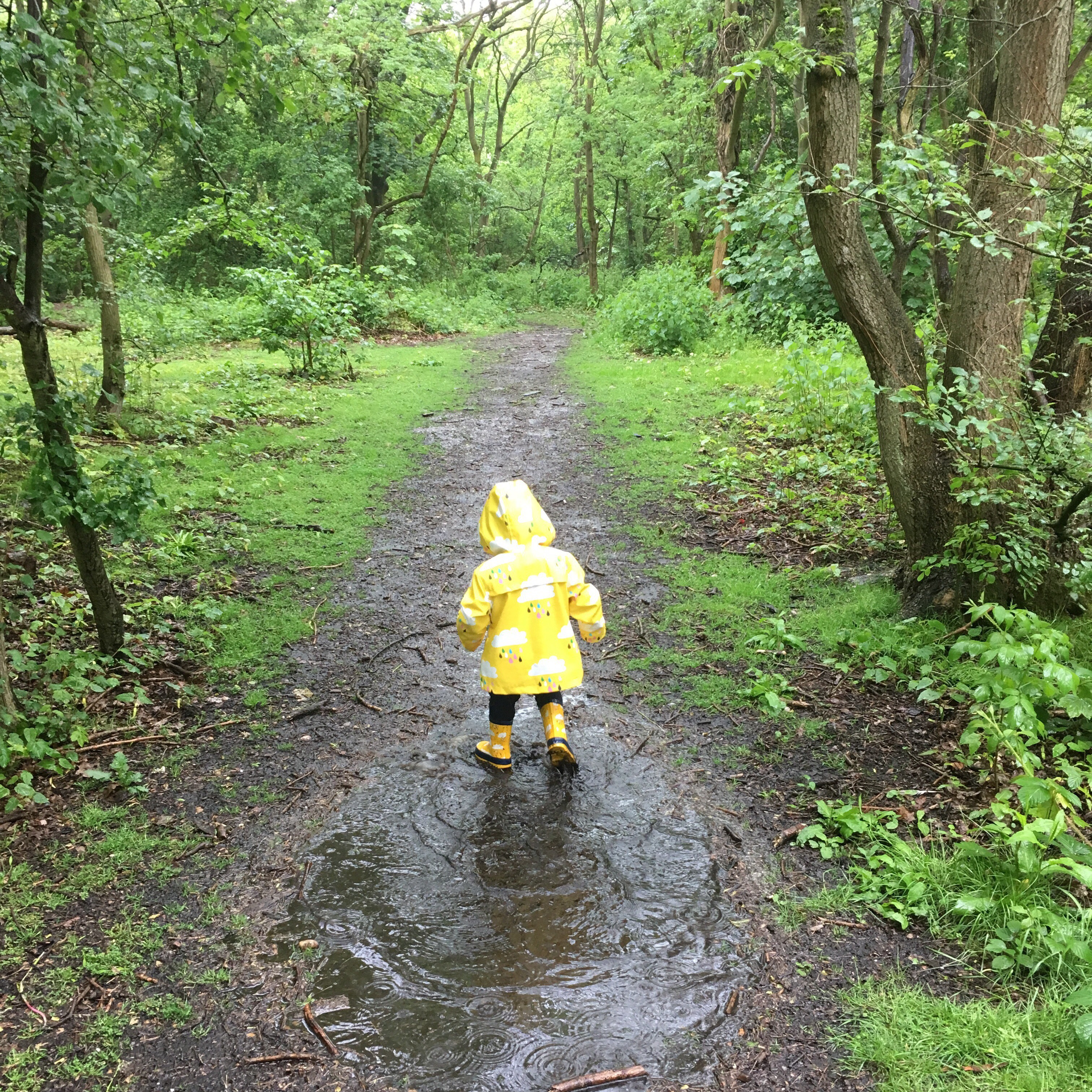 - Forest school – on Wednesday morning I took Totsy to the first Forest School session that has started in our village run by the Staffordshire Wildlife Trust. On the day we had torrential rain but decided to brave it anyway – after all it's only water! We had arranged to meet Hannah our childminder there too with Totsy's little playmate who is exactly the same age and I did wonder if we would be the only ones there because of the dire weather but there was a few others who braved it too so that was nice. The session took place in a local wooded area, it was very unstructured and the kids could choose their activities, hunting for bugs, playing in the mud kitchen, digging in the mud, playing in the swing or hammock, having a drink or snack at the picnic table or just running around splashing in muddy puddles (which was a definite favourite for Totsy!) Despite the fact that the rain was absolutely relentless it was really good fun and made me realise that getting out in the rain can be just as much fun as being out in the sunshine. Watching Totsy laughing her head off as she jumped in all the puddles and ran around in the 'swishy swoshy' long wet grass was lovely and we will definitely be going back regularly (though I'm pretty sure Totsy is going to be disappointed if there aren't any puddles next week!)